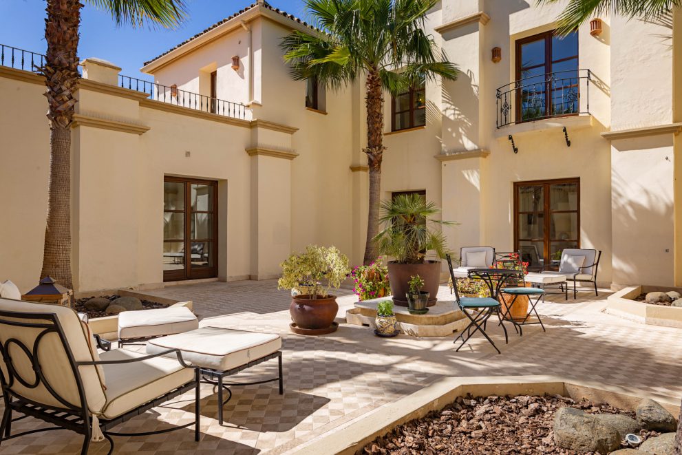 The finca is built around a large central courtyard. This courtyard is the heart of this country home. Each wing connects directly to it through internal access, so the layout feels open and highly functional. The main living areas are bright and spacious. Large sliding doors bring in natural light throughout the day. In addition, they create a seamless flow to the terraces and gardens.