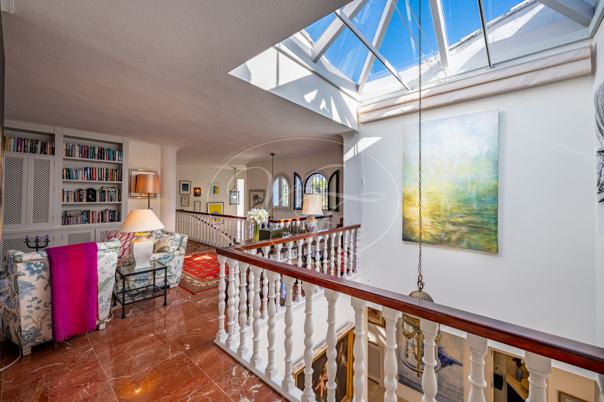 In dieser bemerkenswerten Landvilla in Estepona kann man sehen, wie der Architekt auf wunderbare Weise mit dem Licht gespielt hat, das zu jeder Tageszeit in das Haus fällt. Das Oberlicht, die zusätzlichen Fenster und die großen Fenstertüren tragen dazu bei, dass diese Luxusvilla sehr angenehm hell und lichtdurchflutet ist.