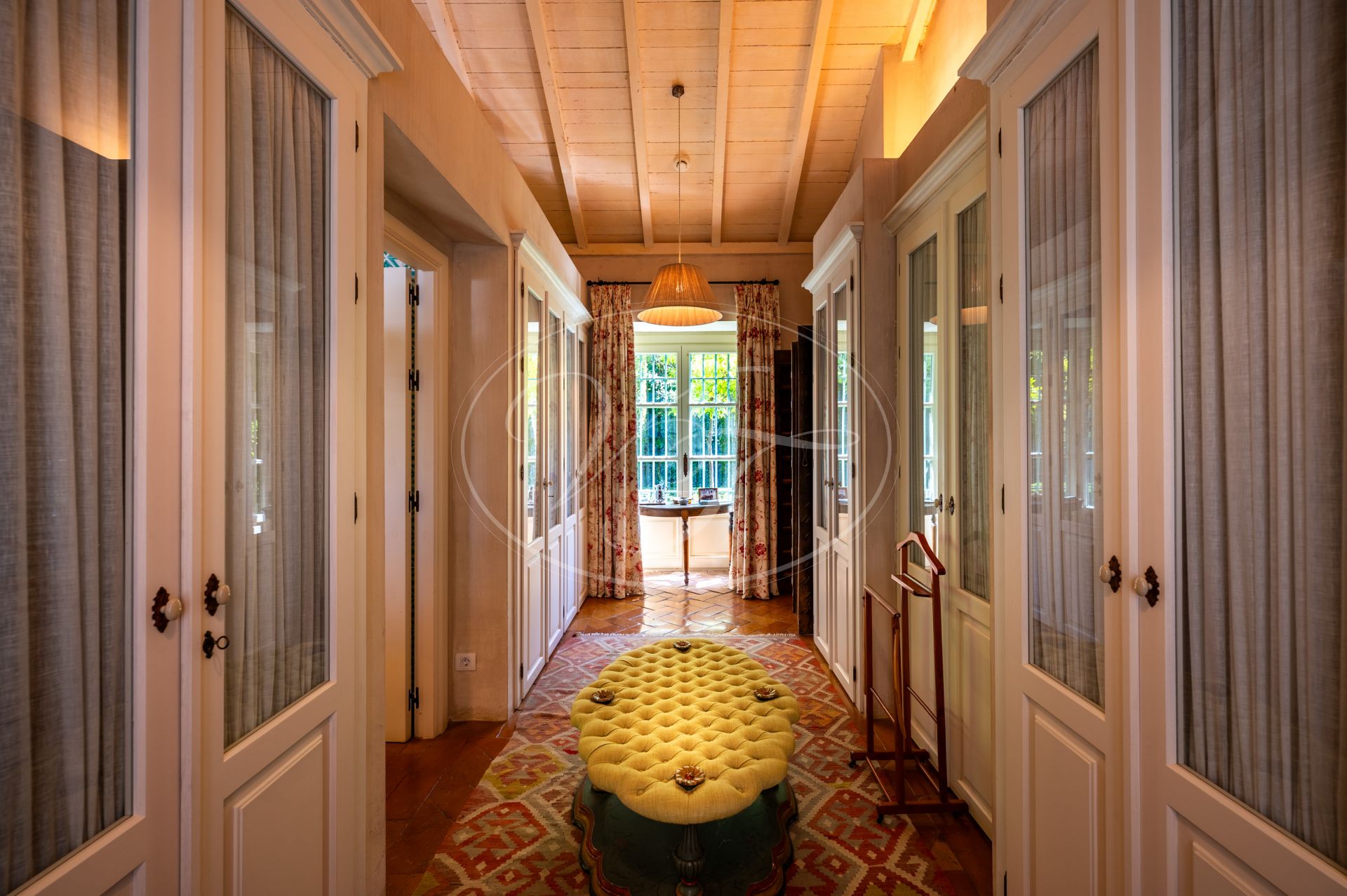 En el ala derecha, en la planta baja encontramos un distribuidor que da acceso a un dormitorio doble con baño en suite, a la cocina, a un aseo de invitados y la primera planta a través de unas escaleras con una preciosa barandilla de madera pintada a mano. También en esta planta encontramos un office/cocina auxiliar y una sala de botas de montar. Esta ala tiene entrada independiente desde el patio interior y desde un lateral de la villa. En la planta primera hay dos dormitorios con baño en suite y una sala de estar. Todas las dependencias cuenta con radiadores.